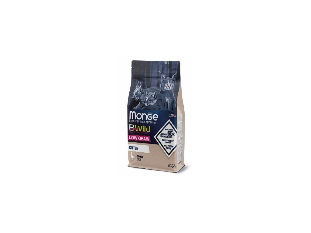 Monge BWild Low Grain Kitten Cat Goose - kompletní a vyvážené krmivo pro koťata v období růstu od 1 měsíce až do dospělosti - nízký obsah obilovinDoplňkové parametry