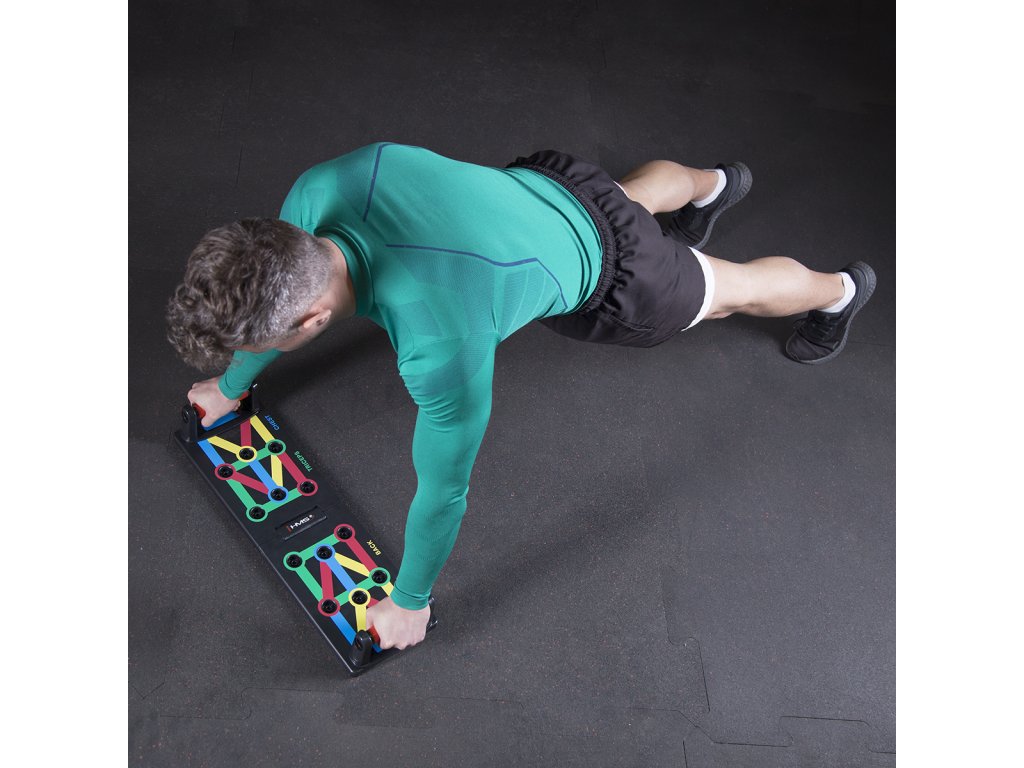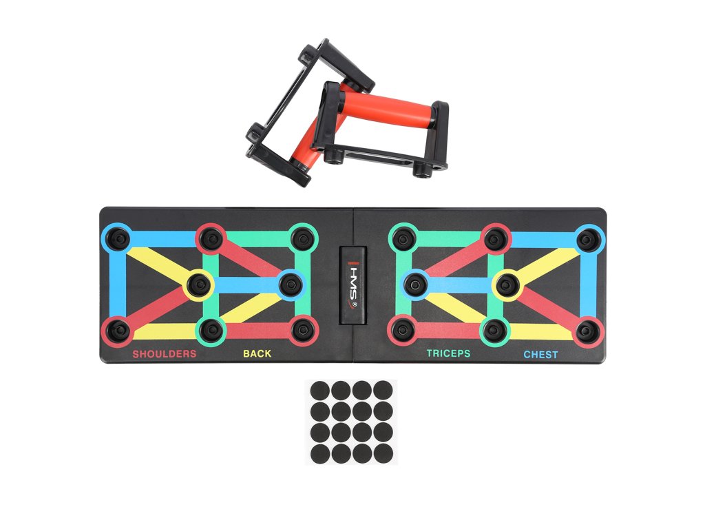 PU12 HMS je multifunkční, skládací deska, která umožňuje variabilní trénink kliků. Deska je symetricky rozdělena na 2 poloviny. PU12 obsahuje 8 párů otvorů pro umístění dodávaných podpěr. Každý pár otvorů umožňuje trénink pod jiným úhlem, kdy se procvičuje jiná svalová skupina a to: