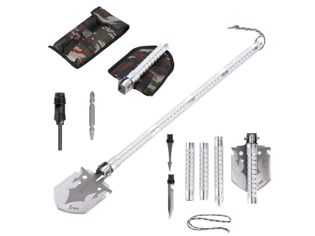 Tato multifunkční lopata má řadu různých nástrojů: od pily, rýče, motyky, štěpkovače, nože až po podpalovač, udidla, provazový nůž, rozbíječ skla, krejčovský metr, otvírák, špíz, a dokonce i píšťalka - vše potřebné v obtížných situacích.polních podmínkách. S lopatou NC1752 budete připraveni na jakýkoli úkol, ať už jde o stavbu přístřešku, přežití v divočině, pomoc v nouzi nebo práci na zahradě. Přiložený kufřík usnadňuje přepravu a vestavěné nástroje z něj dělají jednu z nejuniverzálnějších součástí vybavení pro každého nadšence dobrodružství.