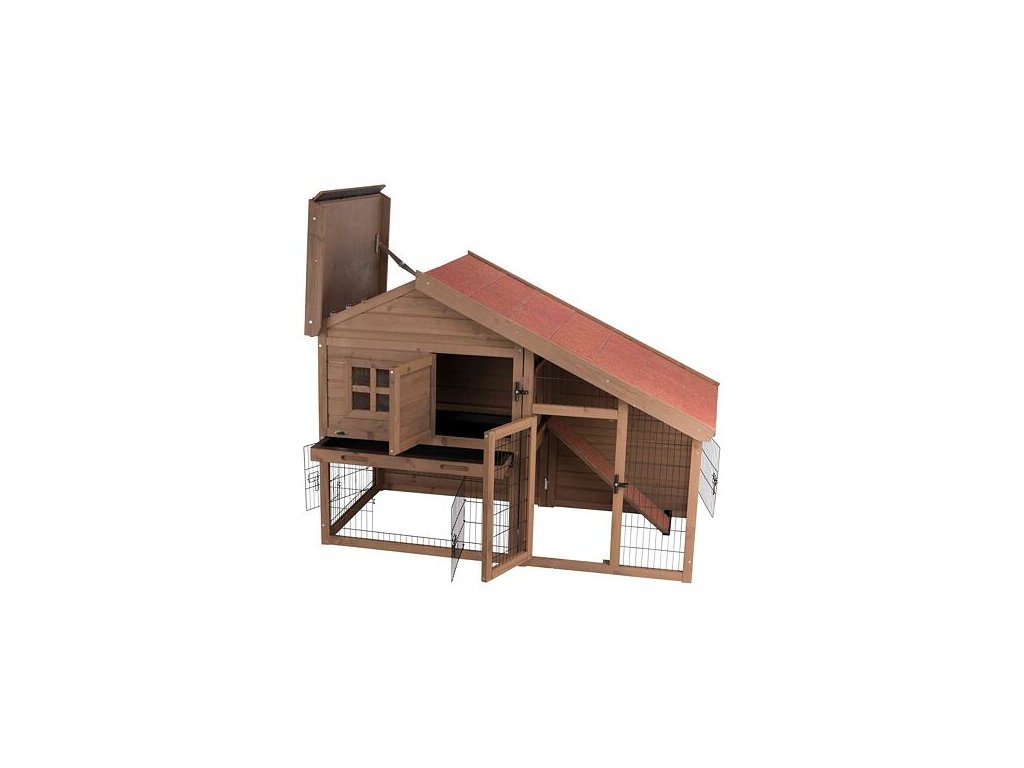 NATURA dřevěný dům pro králíky, s výběhem 151 x 107 x 80 cm, tmavohnědá