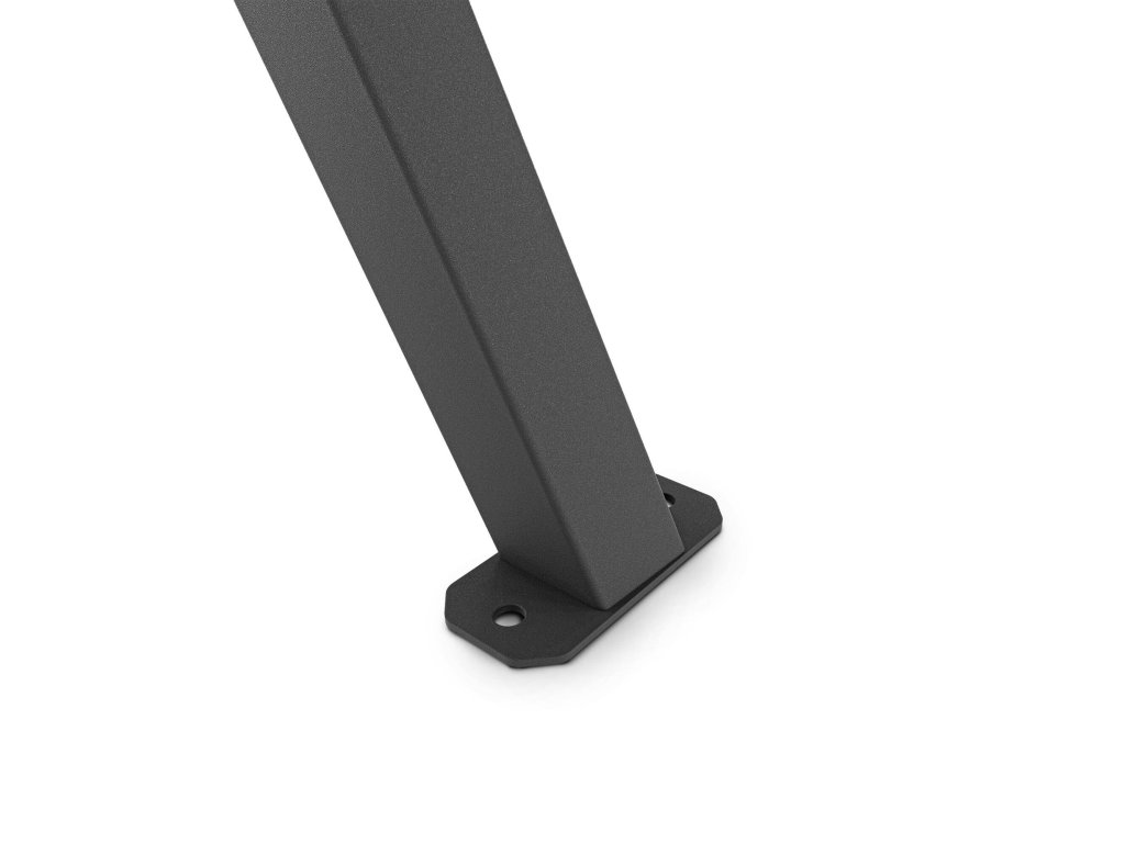 Sestava je vyrobena z vysoce kvalitního ocelového profilu 60x60x2 mm a rám tak je mimořádně pevný. Ocel je ošetřena práškovým nástřikem, který zajišťuje vysokou odolnost vůči povětrnostním vlivům – jako je déšť, vítr, nízké a vysoké teploty – a mechanickému poškození včetně poškrábání.