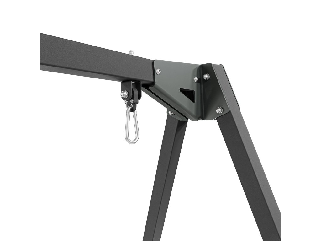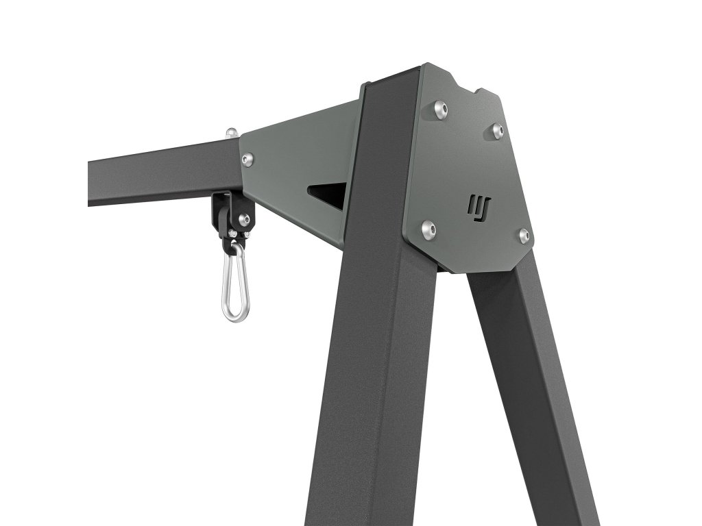Pevné spoje a široká základna zajišťují stabilitu i při intenzivním používání. Stabilita rámu je navíc zvýšena výztuhou mezi nohami a příčníkem v podobě vhodně zahnutého upevňovacího prvku. Rám je vysoký přes 2 metry, díky čemuž je vhodný pro děti i dospělé. Tupý úhel tvořený příčkou s nohami výrazně zvyšuje stabilitu a bezpečnost celé konstrukce.