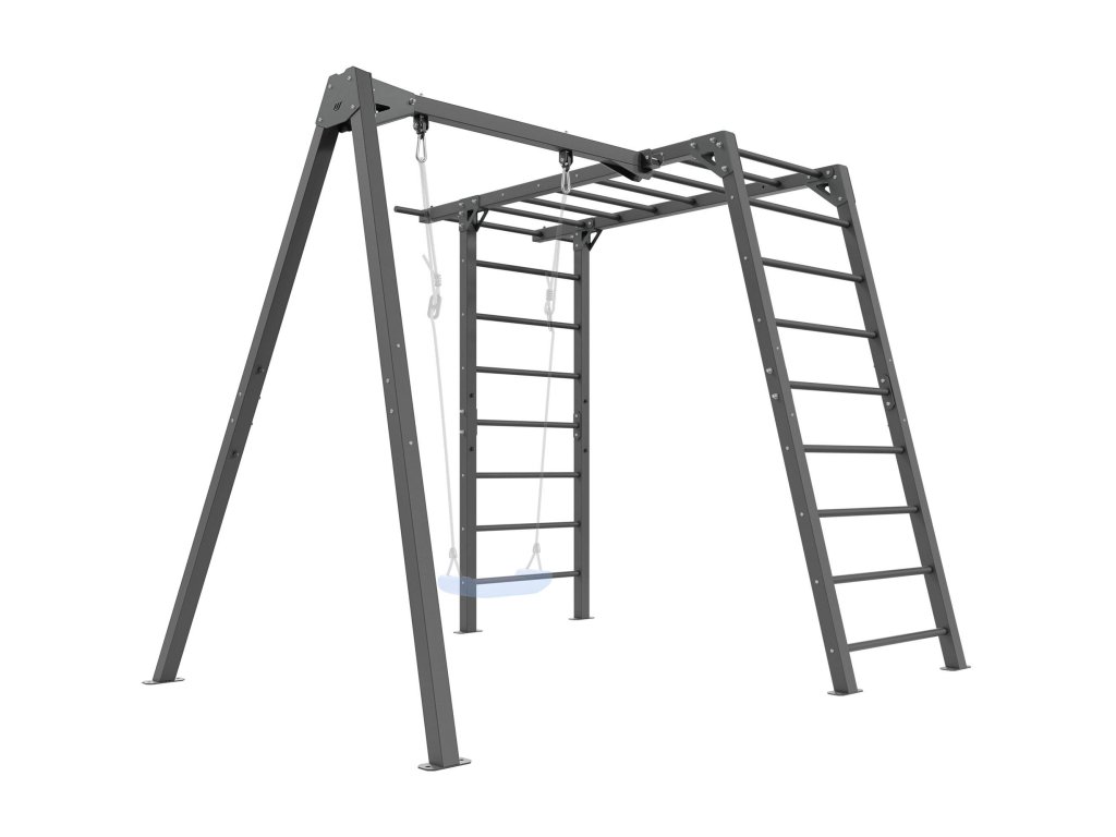 Funkční zahradní sestava od MARBO Sport MO-Z6 skládající se z konstrukce pro 1 houpačku a gymnastických žebřin, které děti využijí i jako prolézačku. Sestava je ideální pro trénink, nebo rodinnou zábavu v soukromí vlastní zahrady.