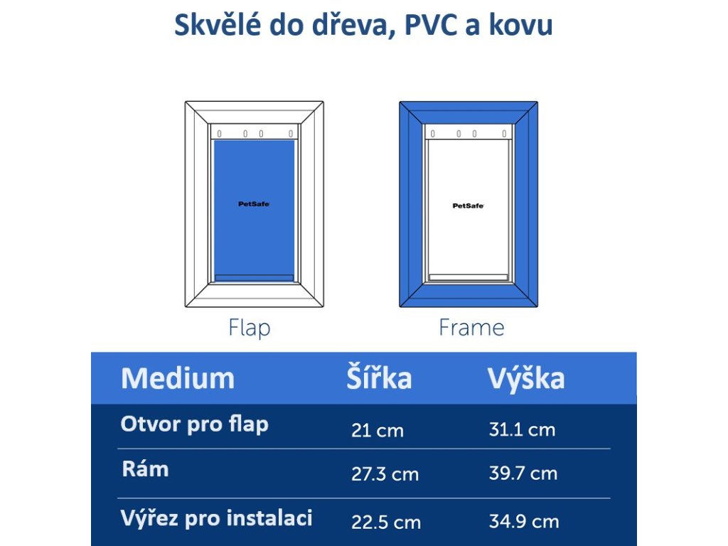 Dveře se snadno montují do obložených, dřevěných, plastových a kovových dveří s tloušťkou od 3,75 do 5 cm a instalaci díky přiloženému návodu jednoduše zvládnete i sami. Na výběr máte ze 3 velikostí dvířek pro domácí mazlíčky s hmotností až do 100 kilogramů.