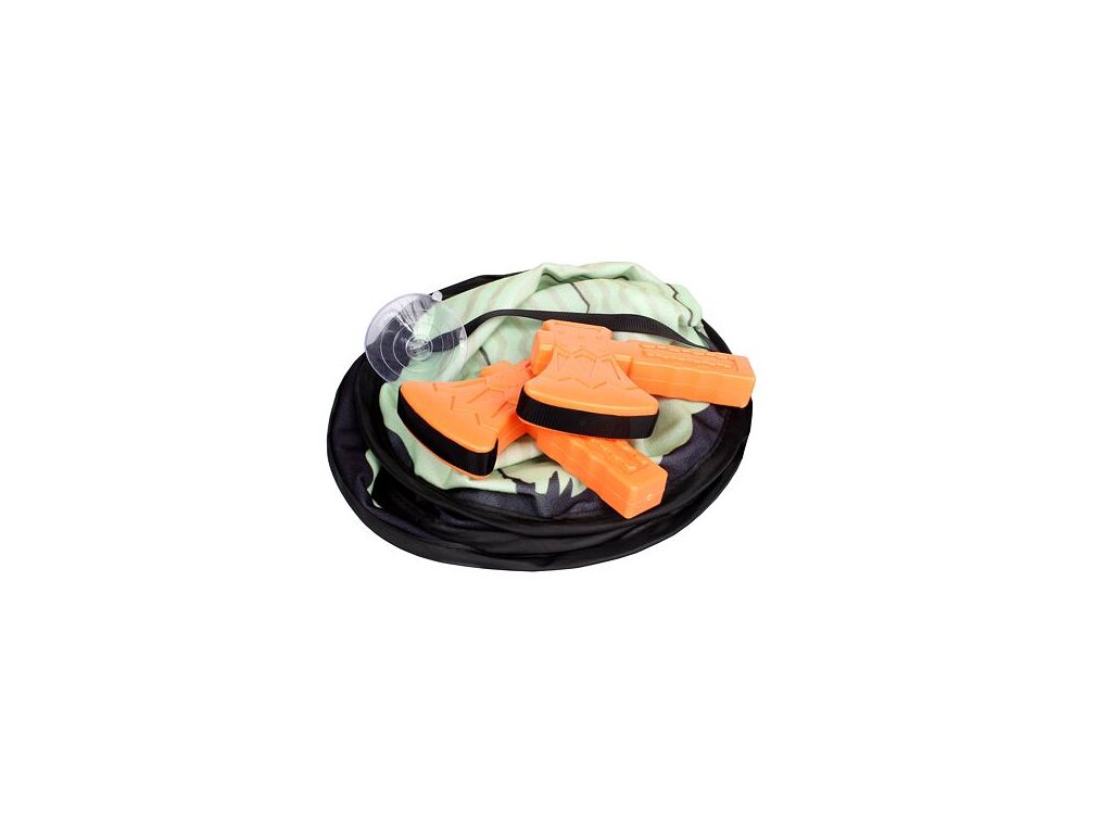 Udowodnij swoim znajomym, że jesteś królem rzucania toporem i zdobądź jak najwięcej punktów! Celownik na rzepy obudzi w Tobie prawdziwego Indianina, pokazując celność i sztukę rzucania tomahawkiem. W opakowaniu znajdują się dwie plastikowe siekierki, które można przymocować do flanelowej tarczy za pomocą rzepów. Tarczę o średnicy 70 cm mocujesz do ściany za pomocą gumowej przyssawki i możesz zaczynać zabawę. Ilustrowana punktacja na tarczy inspiruje do rywalizacji z przyjaciółmi o jak najlepszy wynik. Szukasz porady jak prawidłowo rzucić toporem? Na opakowaniu znajdziesz 3 metody, którymi są rzucanie jedną ręką, obiema rękami lub rzucanie od dołu. Tarcza Ax Target na rzep nie jest odpowiednia dla dzieci poniżej 6 roku życia. Parametry: średnica celu: 70 cm rozmiar topora: 14 x 2 cm waga całkowita: 150 g zawartość opakowania: 1x cel, 2x plastikowe siekierki z rzepem materiał: flanela, plastik, gumowy pierścień nie nadaje się dla dzieci poniżej 6 roku życiaParametry dodatkowe
