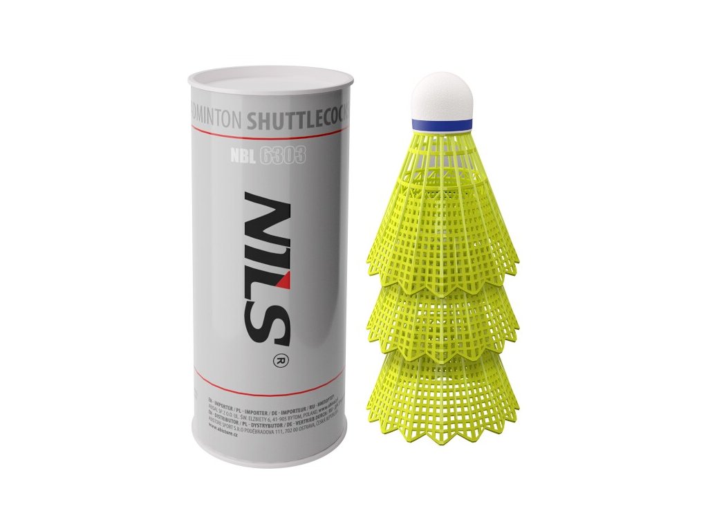 Rakiety do badmintona NILS NBL6303 mają podstawę ze sztucznego korka i nylonową miskę. Lotki nylonowe są trwalsze niż lotki z piór. Podstawa jest wyważona, aby zapewnić wysoką kontrolę lotu.
