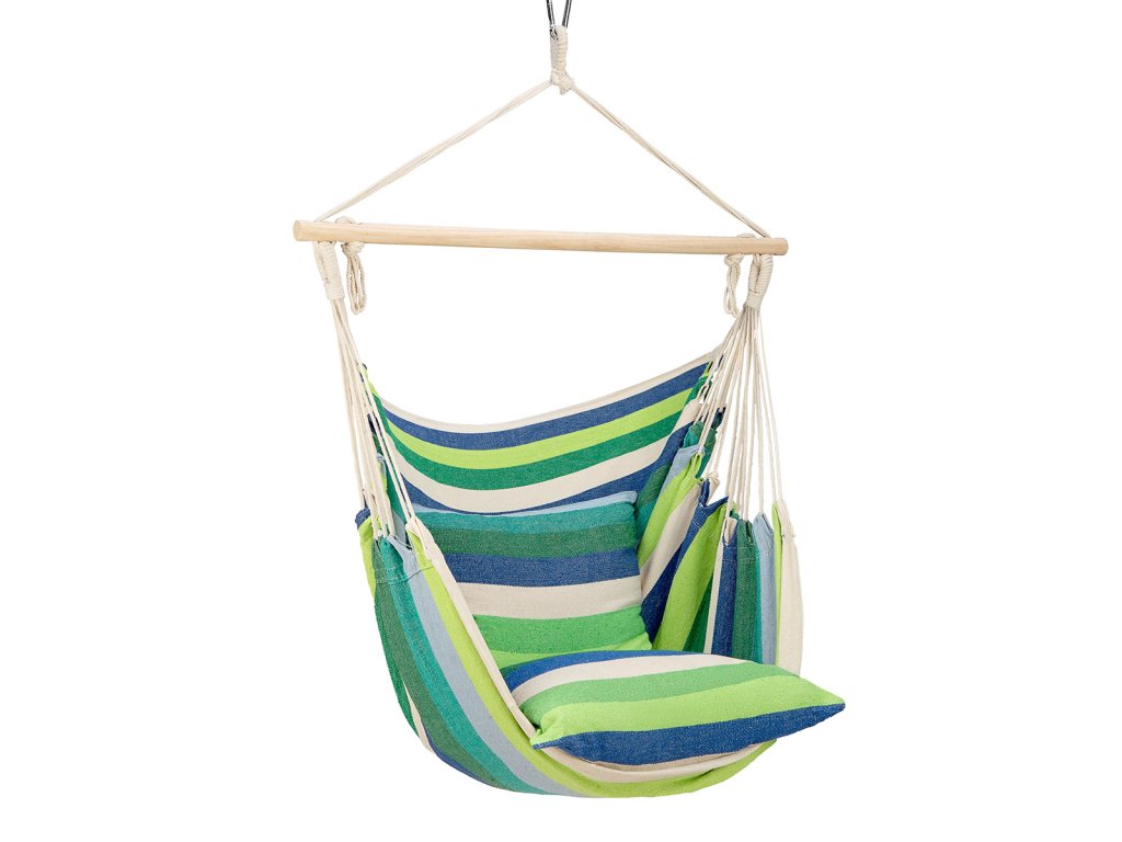 Konstrukcja brazylijskiego krzesła opiera się na sieciach huśtawek. Część tekstylna wykonana jest z płótna T/C (połączenie poliestru i bawełny), które za pomocą pojedynczych lin jest kształtowane w kształt krzesła. Liny przechodzą przez drewnianą poprzeczkę i zbiegają się do ucha zawieszenia. Wystarczy rozpakować fotel, powiesić go w dowolnym miejscu na odpowiedniej wysokości i można odpocząć na przykład czytając ulubioną książkę. Model NC3107 wyposażony jest także w 2 wygodne poduszki. Zastosowane materiały zapewniają nie tylko oddychalność i wygodę krzesła, ale także jego długą żywotność i trwałość.