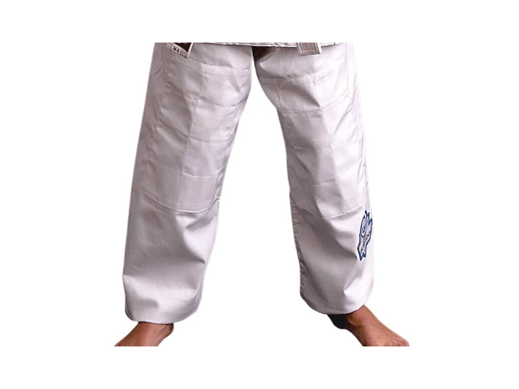 Spodnie kimono wykonane są z lekkiego materiału i posiadają elastyczną talię ze sznurkiem, dzięki czemu idealnie dopasowują się do każdej sylwetki i nie zsuwają się podczas ćwiczeń. Spodnie są wzmocnione w kroku i na kolanach, aby zapewnić maksymalną trwałość.