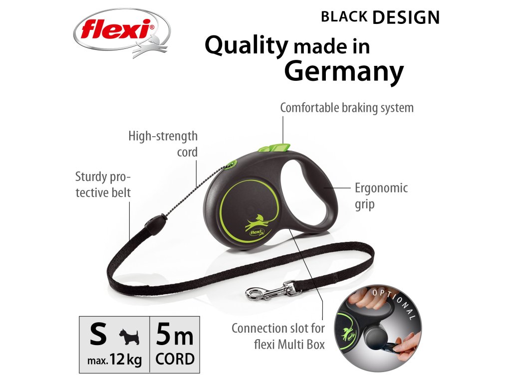 FLEXI Vodítko Black Design S lanko 5m černo-zelené