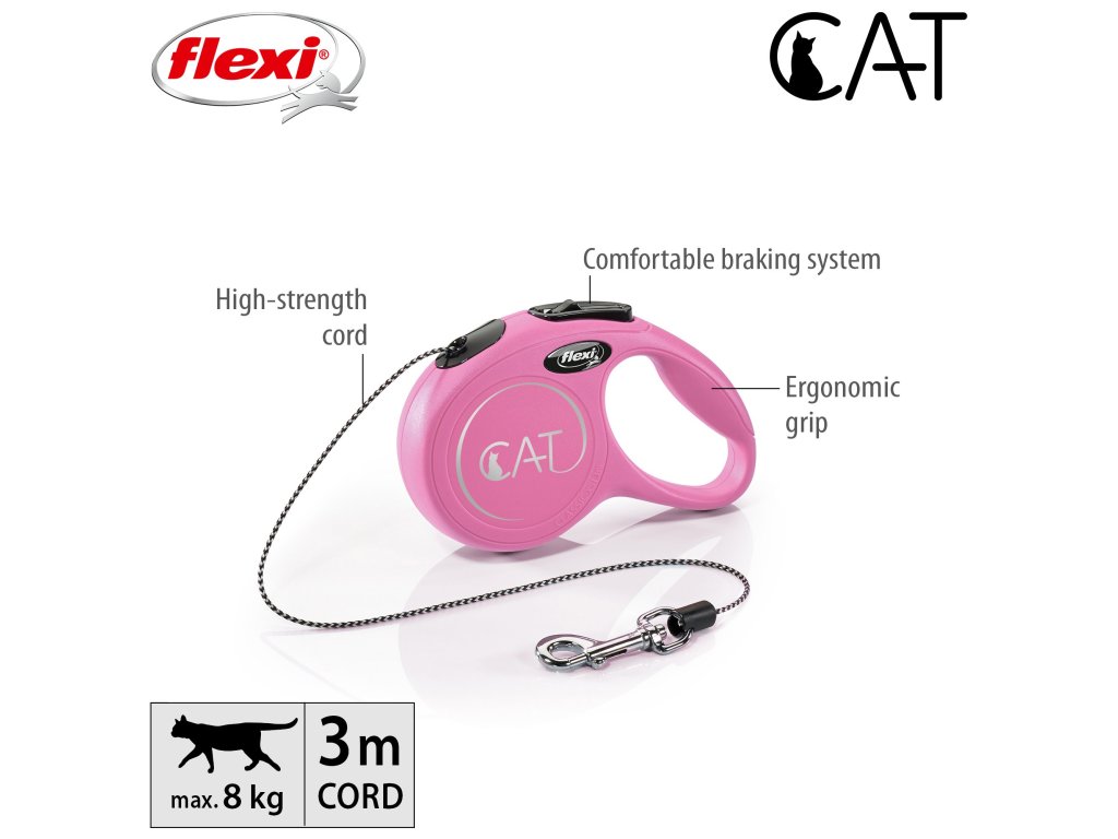 FLEXI Vodítko New Classic Cat XS lanko 3m růžové