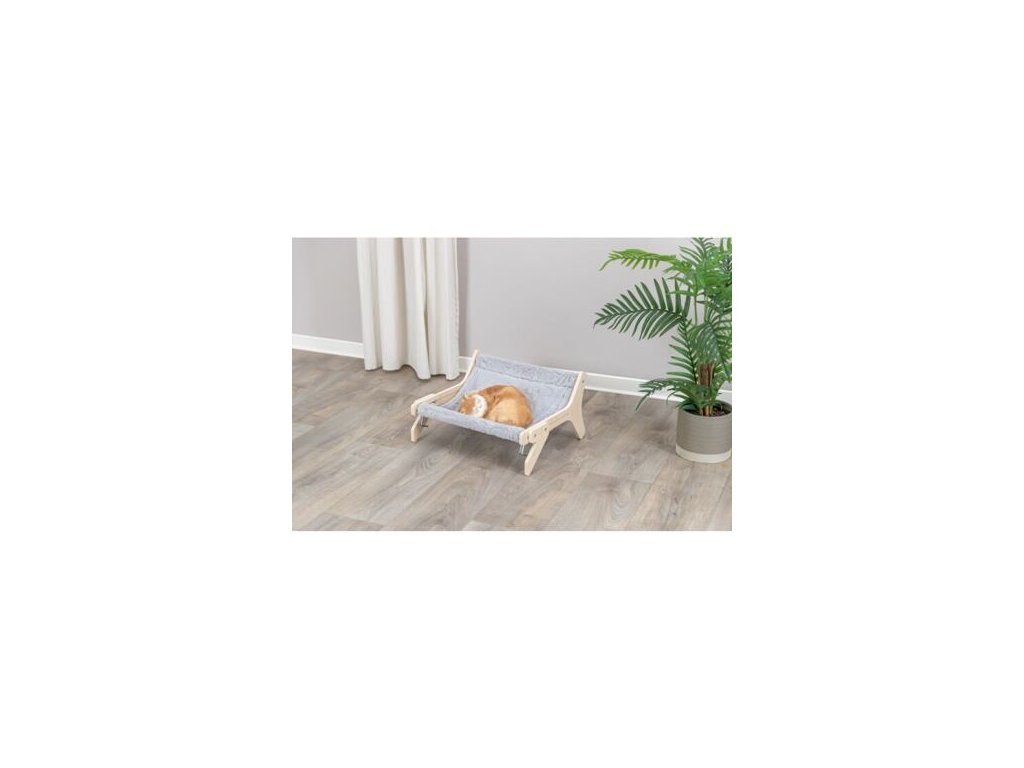 Hammock, lehátko pro kočky do 12 kg, 47 x 24 x 38 cm, dřevo/plyš, šedá