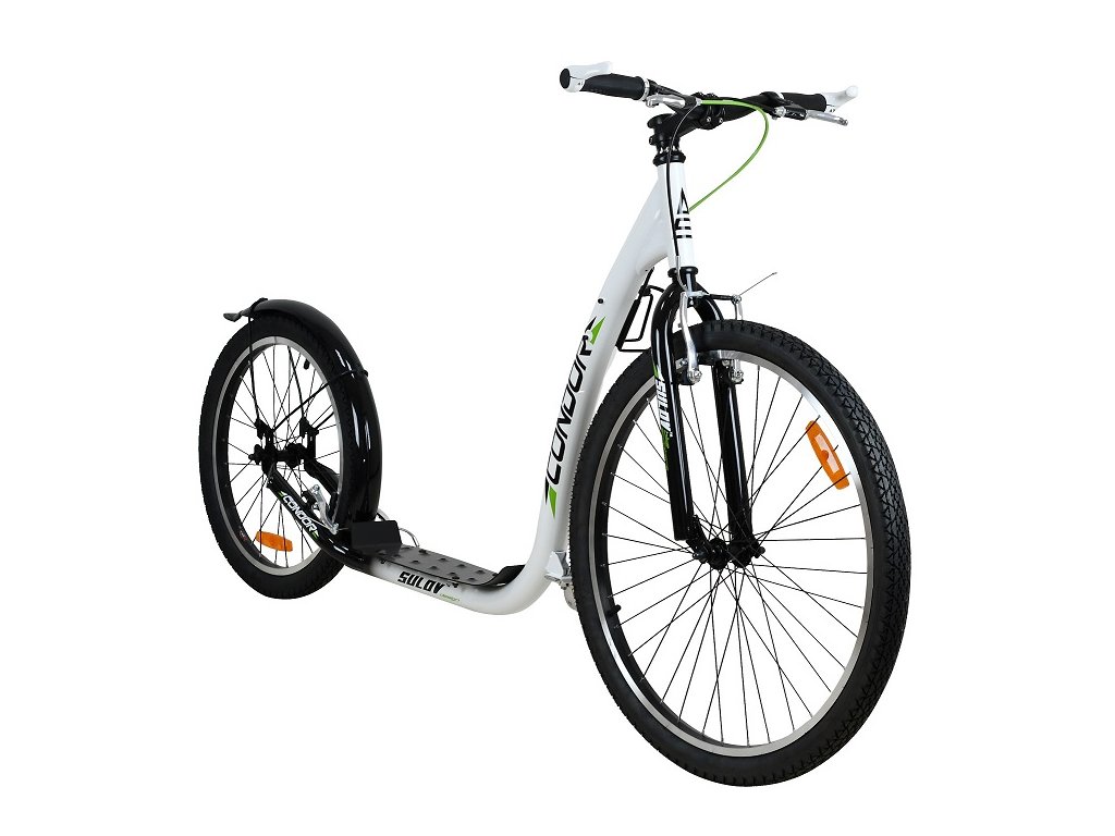 Dzięki dużym pompowanym kołom 26"/20" hulajnoga sportowa Sulov CONDOR idealnie nadaje się do jazdy po mieście i po utwardzonych ścieżkach rowerowych. rama hulajnogi wykonana z wysokiej jakości lekkiej stali, w szprychach kół znajdują się odblaski zwiększające bezpieczeństwo przednie i tylne aluminiowe hamulce V-brake aluminiowe felgi wyposażenie obejmuje uchwyt na bidon, składaną stopkę, tylny błotnik stalowy oraz narożniki kierownicyParametry dodatkowe