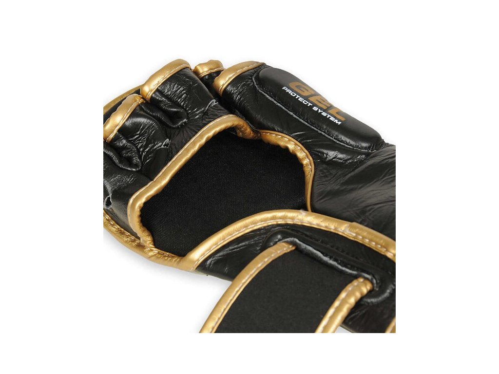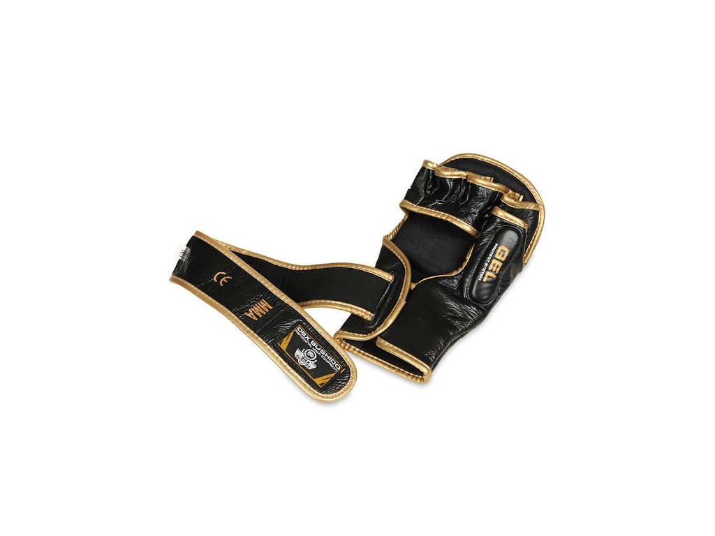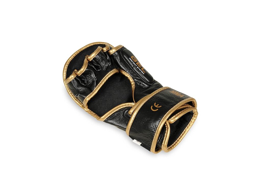 DBX BUSHIDO ARM-2011d Rękawice MMA i treningowe wykonane są z naturalnej skóry bydlęcej, wypełnionej wysoką warstwą pianki, która doskonale amortyzuje wstrząsy. Dzięki otwartej wewnętrznej stronie rękawice pozwalają zachować chwyt, a dłoń jest doskonale wentylowana. Dodatkowo rękawica posiada ochronną nakładkę na kciuk oraz długi, szeroki pasek na nadgarstek, który minimalizuje ryzyko kontuzji. Wewnętrzna strona wyłożona jest gładkim materiałem, co ułatwia zakładanie i zdejmowanie nawet podczas wymagającego treningu. Anatomiczny kształt rękawic zapewnia wygodę ich użytkowania.
