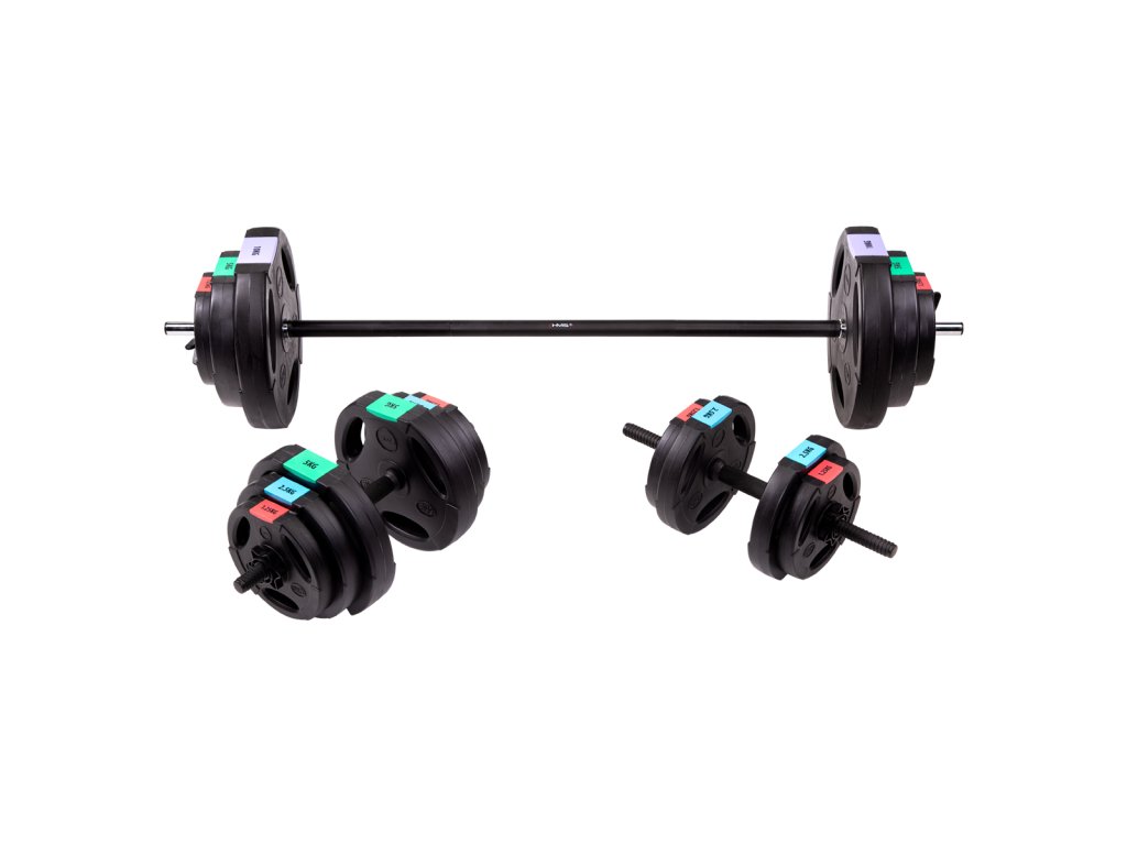 Kompletny zestaw obciążeniowy składający się z dwóch hantli jednoręcznych i jednego dwuręcznego o łącznej wadze 62 kilogramów, to HMS SGSP60. Hantle należą do klasycznego wyposażenia każdej domowej siłowni.
