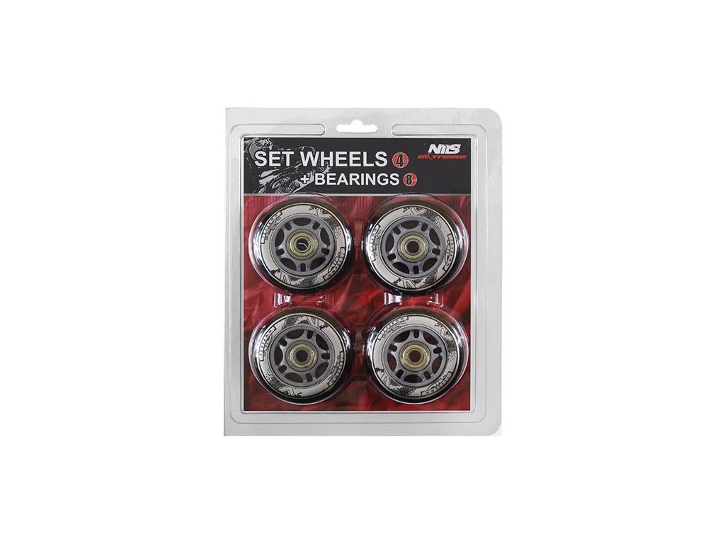 Komplet czarnych kółek PU 64x24 + łożyska ABEC9 NILS EXTREME