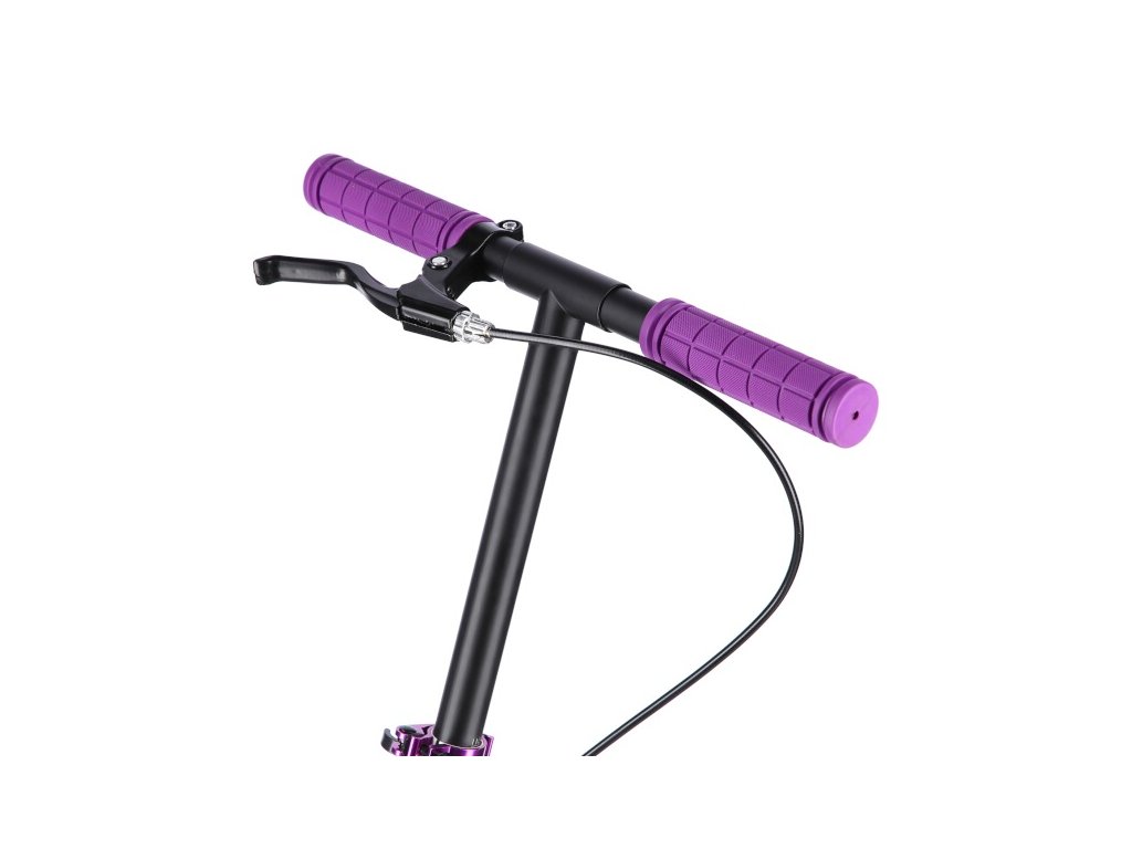 Składana stalowa konstrukcja jest lekka, mocna, a po złożeniu nie ma problemu z podróżowaniem hulajnogą np. autobusem czy tramwajem. HM0180 z łatwością zmieści się także w bagażniku samochodu, gdzie nie zajmuje dużo miejsca i można go zabrać ze sobą np. na wakacje. Dźwignie na kierownicy wyposażone są w gumowe uchwyty, które zapewniają pewne i wygodne trzymanie chwyt. Wysokość kierownicy można regulować w 3 stopniach w zakresie od 75 do 102 cm.