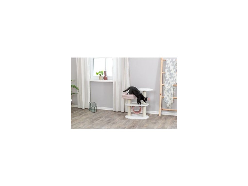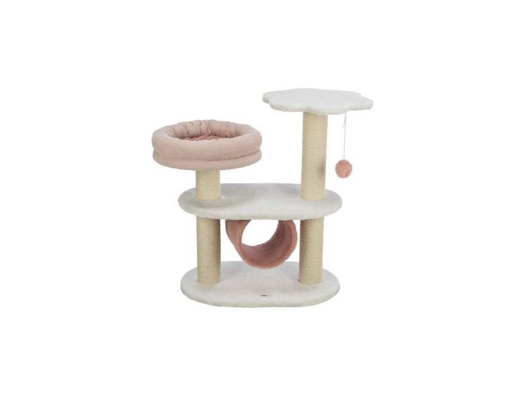 Drapak ISABELLA, 70 cm, podstawa owalna, 2 poziomy, tunel, łóżko, biały/antyczny róż