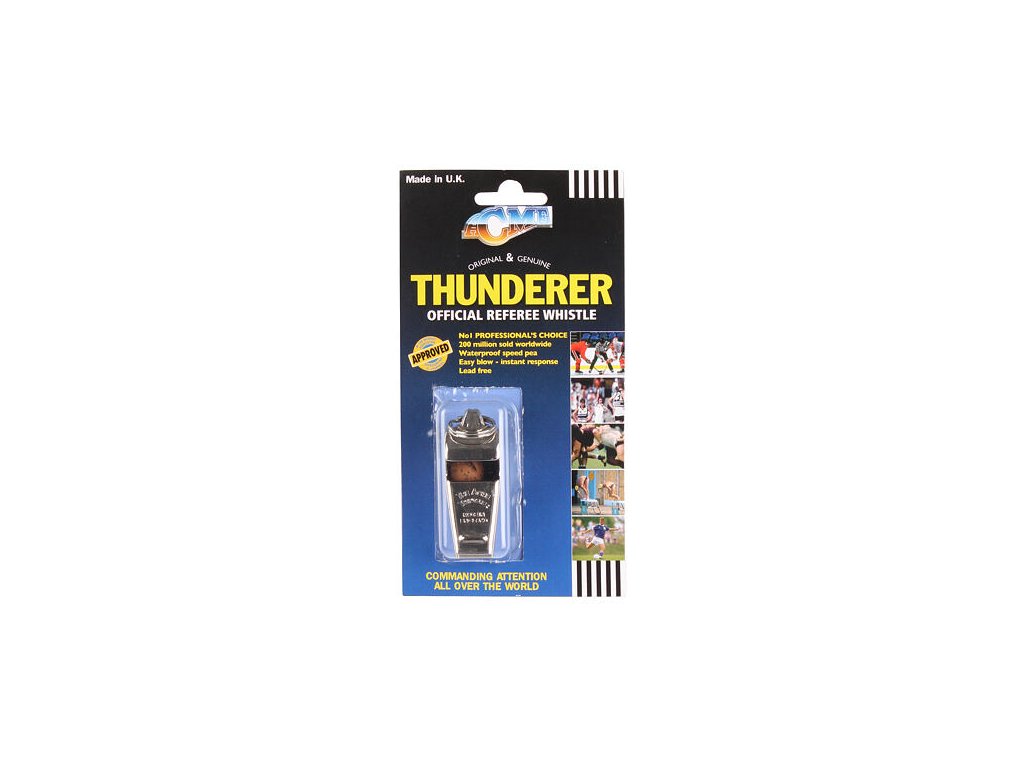 Metalowy gwizdek Acme Thunderer 58,5 ma głębszy gwizdek o wartości 115 dBA. Najczęściej spotkacie go na meczach piłki nożnej, hokeja czy rugby.Parametry dodatkowe