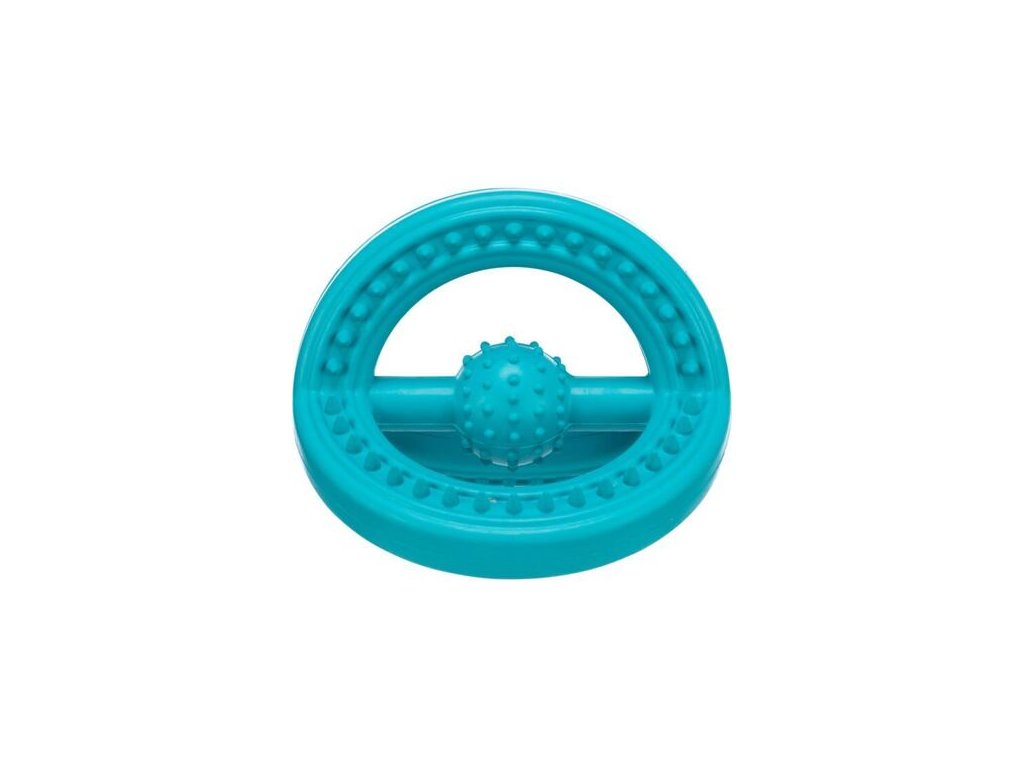 gumowa zabawka z plastikowymi wypustkami, które ułatwiają psu złapanie zabawki i noszenie jej materiał: kauczuk naturalny rozmiar: 14cm...