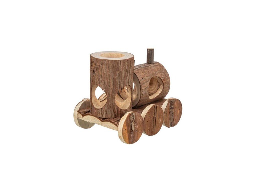 Pociąg LEVIN dla myszy, 17 x 14 x 12 cm, drewno naturalne z korą