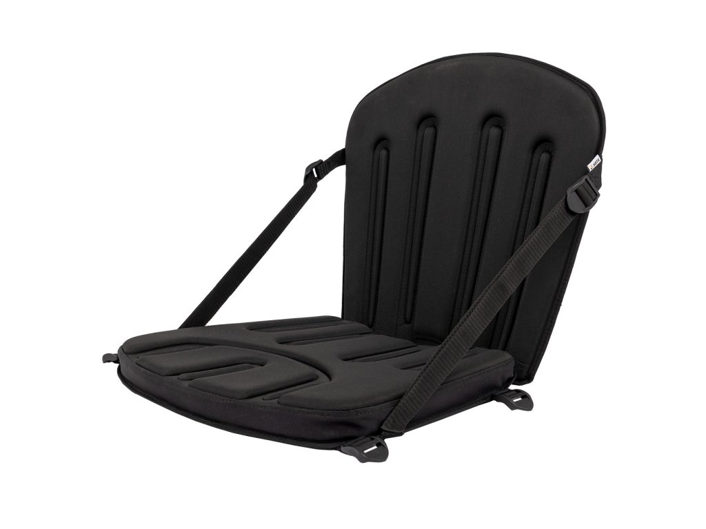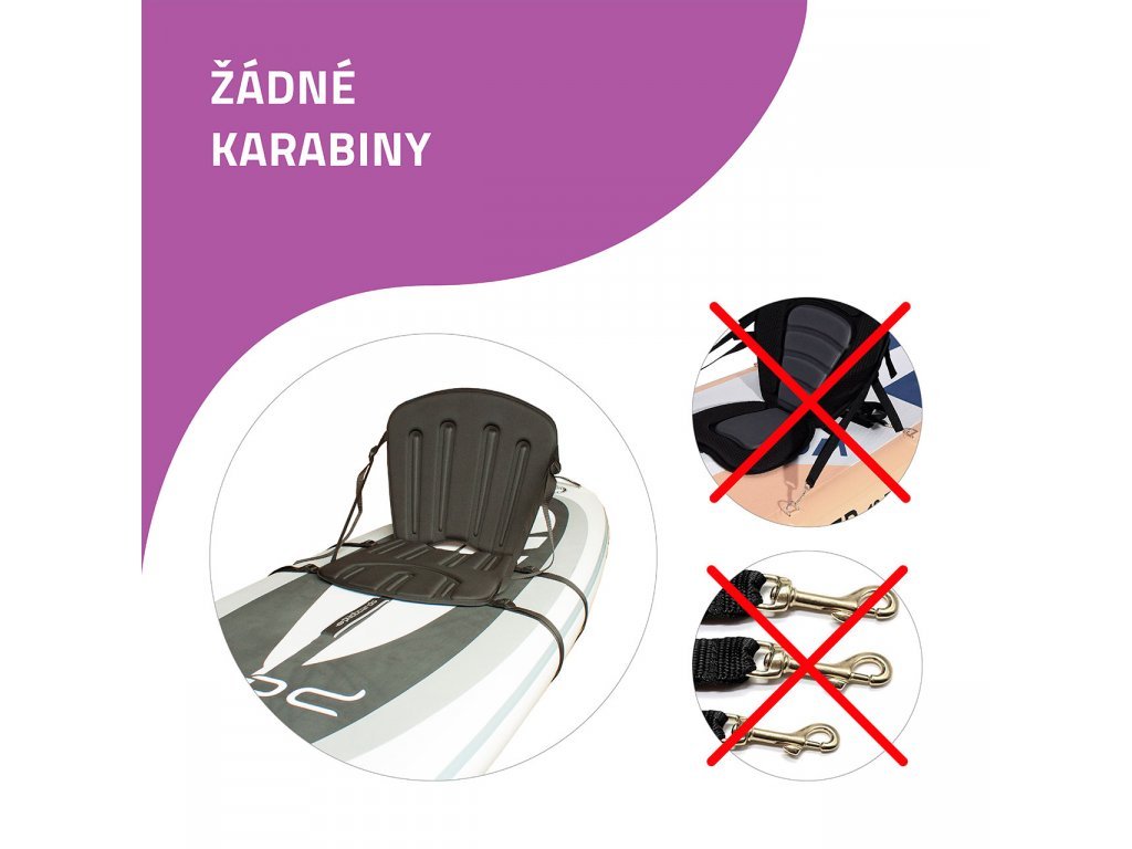 Uniwersalne siedzisko z podniesioną poduszką zapewniającą większy komfort. Łatwy montaż w dowolnym miejscu na płycie. Nie ma potrzeby posiadania paddleboardu z karabińczykami. Wzmocniony tył. Podwyższona poduszka siedziska zapewnia wygodniejszą postawę, która jest łagodniejsza dla bioder i kolan.