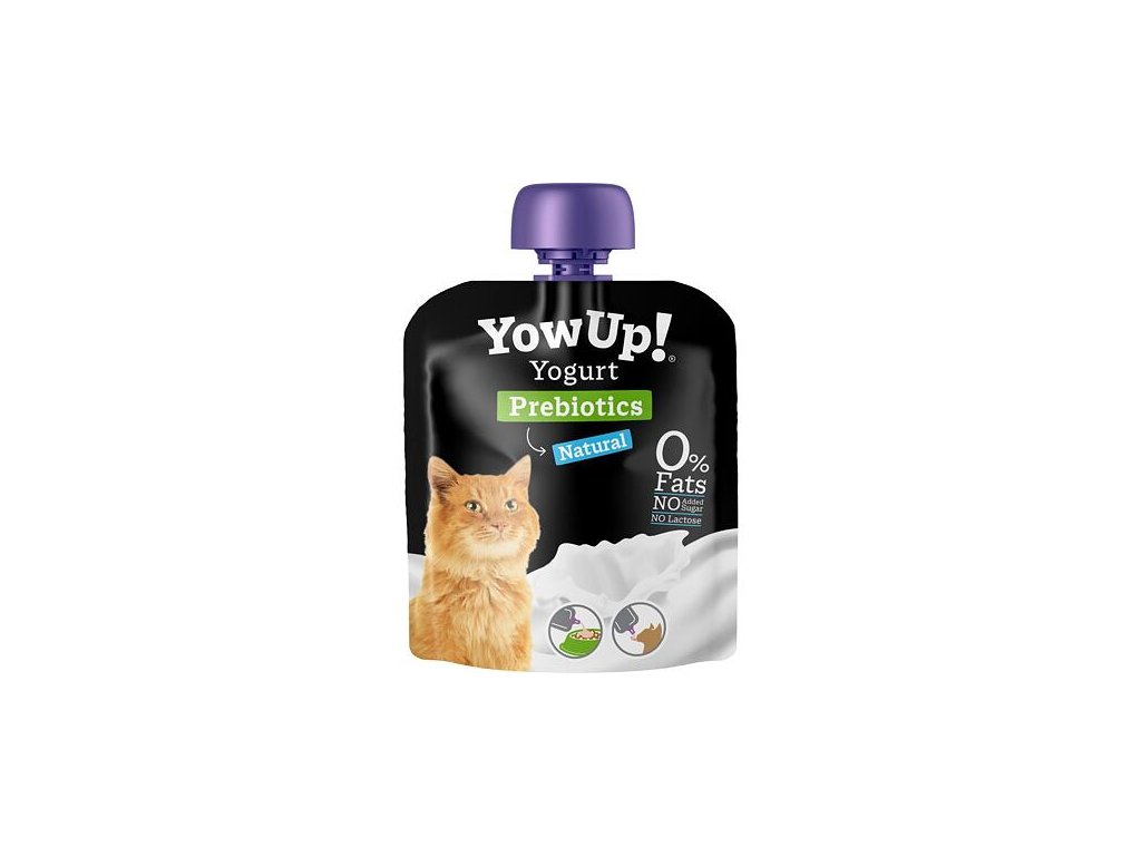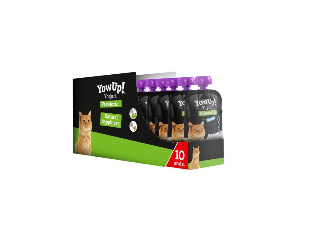 Poprzez włączenie i regularne podawanie jogurtu YOWUP! zapewnimy Twojemu kotu odpowiednią podaż prebiotyków, a tym samym długotrwały korzystny stan mikroflory jelitowej, co może pozytywnie wpłynąć na inne funkcje organizmu.