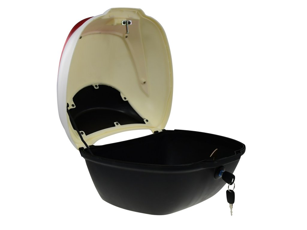 Uniwersalna wodoodporna walizka podróżna do motocykla elektrycznego RACCEWAY E-BABETA - wykonana z wysokiej jakości materiału PVS - bardzo trwała i solidna - odblaski z czerwonej pleksi - zamykana (2x klucze) - wodoodporna - pojemność: 16 litrów - szer. 38 * długość z zawiasem 39,5 * głębokość zamknięta 22 * głębokość dolnej części 14cm Wymiary: 30 x 40 x 24 cmParametry dodatkowe