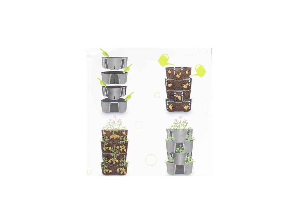 Pěstební nádoba od Plastkonu je praktická vychytávka pro každého zahrádkáře. Tento skládací vyvýšený záhon se skládá ze čtyř pater a využijete jej pro pěstování nejen pro brambory, ale i pro jahody, bylinky apod. Použití je jednoduché, pouze naplníte vždy patro zeminou a sazenicemi a přidáte patro další. Vodou proléváte ze stran i středem. Voda proteče do spodních pater díky dírám na dně každého patra. Tento záhon neobsahuje podmisku. - balení: 4 patra, stohovatelná - každé patro má na dně díry pro protékání - rozměry jednoho patra: nejdelší strana 38 cm x výška 16,5 cm - celkové rozměry po složení: cca 61,5 x 41 cm - materiál: PP - hmotnost: cca 1,4 kgDoplňkové parametry