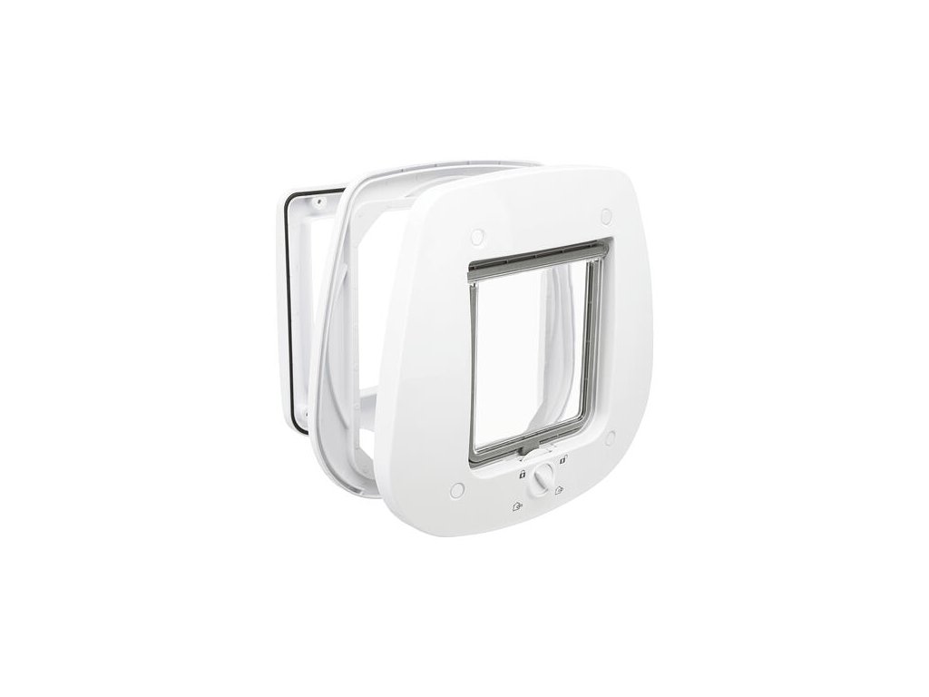 Cửa mèo đi qua, 4 chiều, dành cho cửa kính, 27x26cm, màu trắng