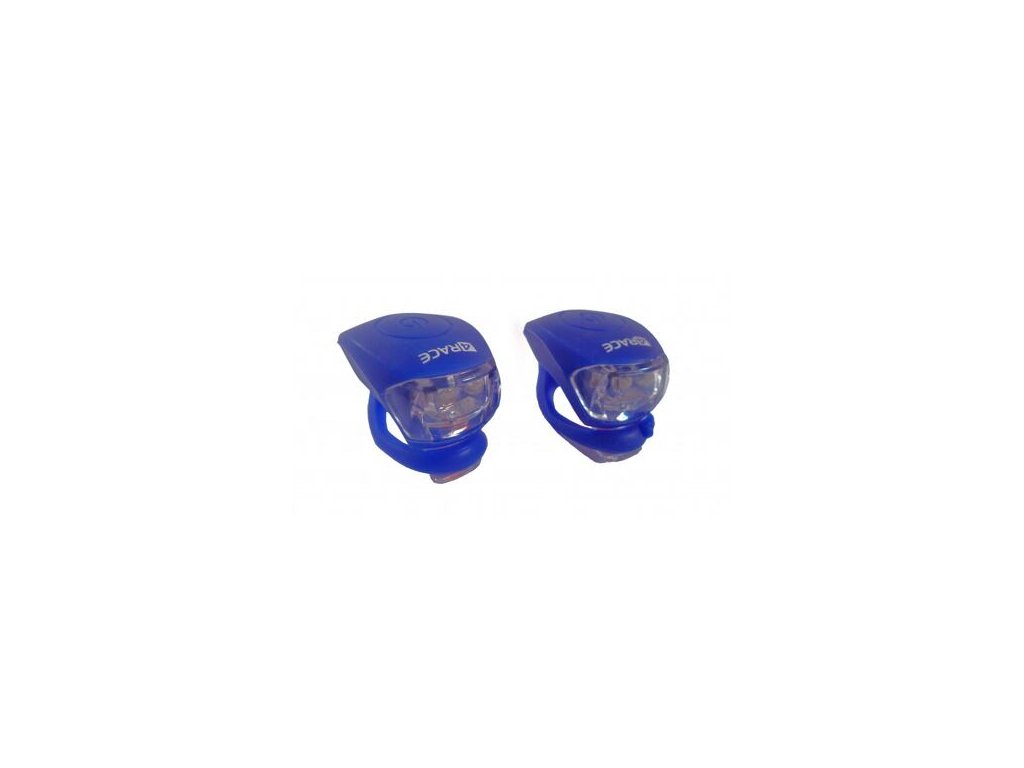 Zajímavý set malých skladných blikaček. Ideální do města kde si nepotřebujete posvítit, ale být viděni. Uchycení na řidítka a sedlovku je řešeno jednoduše převlečením a zachycením úchytného oka za háček. Blikačky mají 2 led diody (přední bílá, zadní červená). Je možnost si zvolit mezi režimem nepřerušovaného svícení a režimem blikání. Vnitřní tělo svítidel je vyrobeno z plastu, který je pokrytý ohebnou gumou, pro lepší ochranu před rozbitím. Balení je včetně baterií.Doplňkové parametry