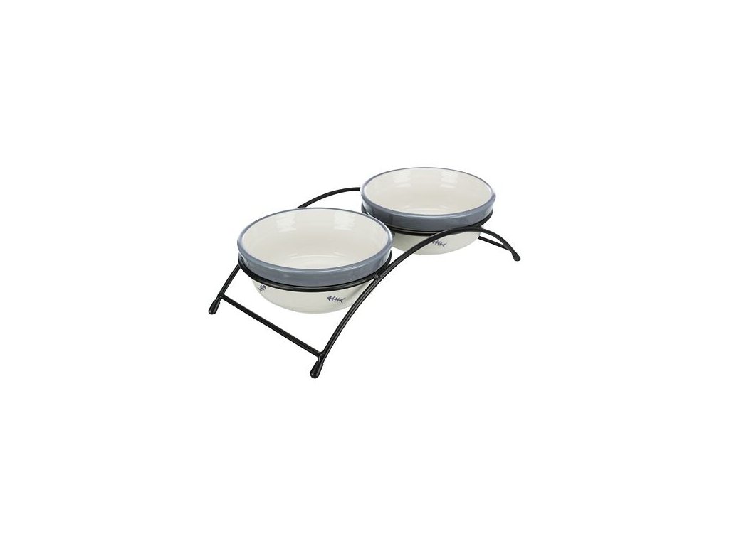 Set keramických misek se stojánkem 2 × 0,3 l / o 12 cm bílá/modrošedá