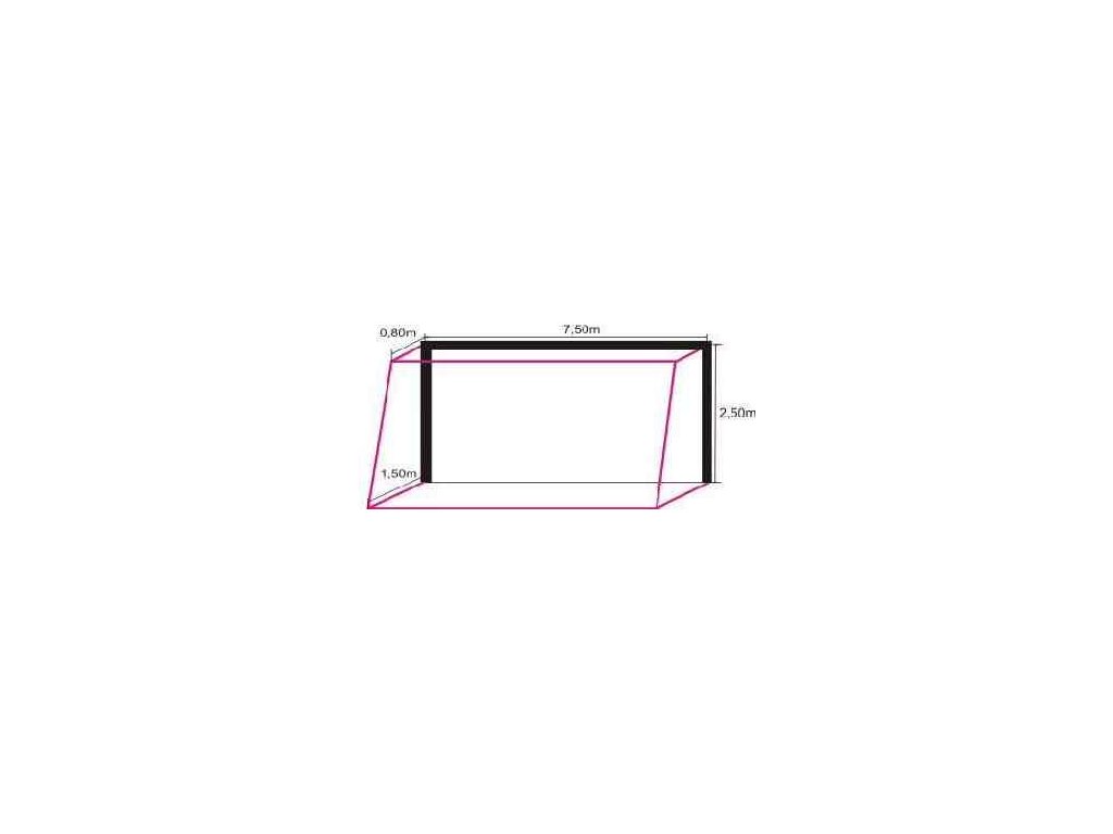 Síť na kopanou. Rozměry: 7,5 x 2,5 m; hloubka 2,0 a 2,0 m; Složení: polypropylénová síťovina; Velikost oka: 120 mm; Síla sítě: 3 mmDoplňkové parametry