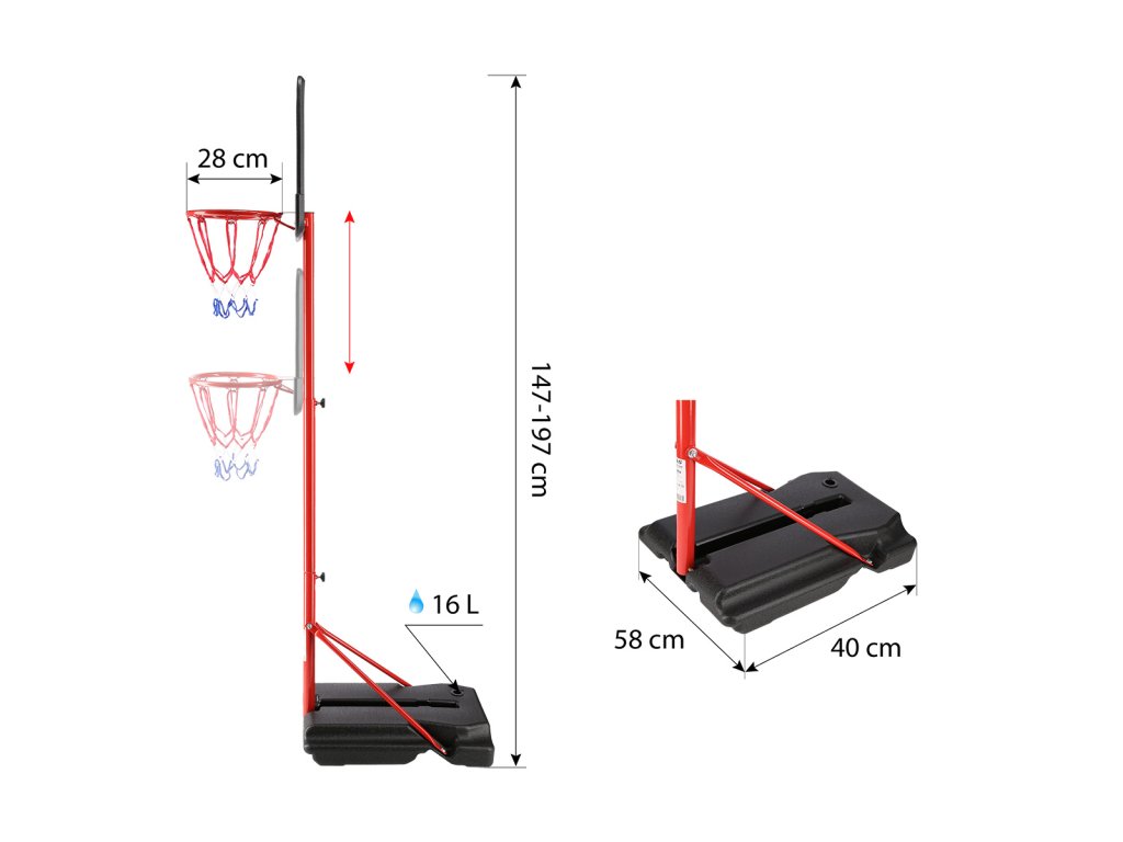 - Výška obruče od zeme: 1,07 a 1,57 m