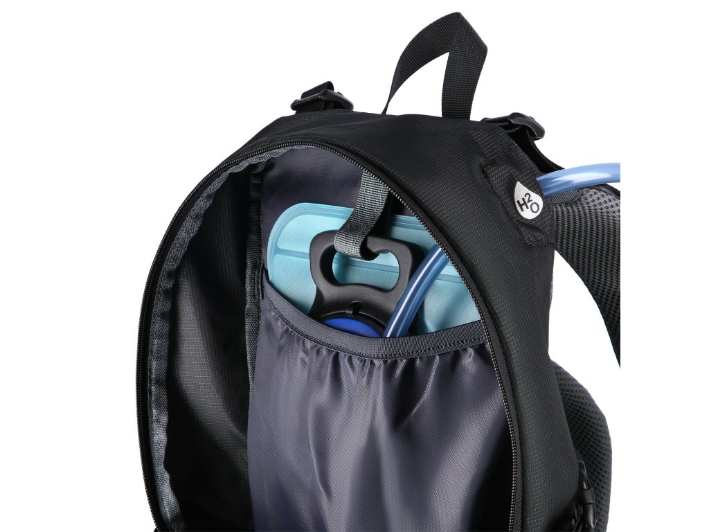 Hlavná komora dvojcestný zips je opatrená vreckom na hydrovak, ktorý možno zavesiť na remienok so suchým zipsom. Druhá, menšia komora je tiež vybavená dvojcestným zipsom a vo vnútri sa nachádzajú 2 vrecká na drobnosti a 3 pútka napríklad pre umiestnenie svietidla. V hornej časti predného panelu sa nachádza menšie vrecko, do ktorého sa pristupuje jednocestným zipsom. Po stranách batohu sú sieťované vrecká s gumičkou v leme, nad vreckami sa nachádzajú dĺžkovo nastaviteľné popruhy s prackou, pod ktoré možno umiestniť napríklad vyššiu fľašu. Z čela batohu sa nachádzajú 2 gumové pútka a 2 slučky na prenášanie turistických palíc, 4 pútka na zavesenie napríklad kempingového vybavenia a pútko na pripevnenie blikačky na zvýšenie viditeľnosti za šera.