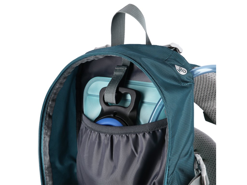 Hlavná komora dvojcestný zips je opatrená vreckom na hydrovak, ktorý možno zavesiť na remienok so suchým zipsom. Druhá, menšia komora je tiež vybavená dvojcestným zipsom a vo vnútri sa nachádzajú 2 vrecká na drobnosti a 3 pútka napríklad pre umiestnenie svietidla. V hornej časti predného panelu sa nachádza menšie vrecko, do ktorého sa pristupuje jednocestným zipsom. Po stranách batohu sú sieťované vrecká s gumičkou v leme, nad vreckami sa nachádzajú dĺžkovo nastaviteľné popruhy s prackou, pod ktoré možno umiestniť napríklad vyššiu fľašu. Z čela batohu sa nachádzajú 2 gumové pútka a 2 slučky na prenášanie turistických palíc, 4 pútka na zavesenie napríklad kempingového vybavenia a pútko na pripevnenie blikačky na zvýšenie viditeľnosti za šera.