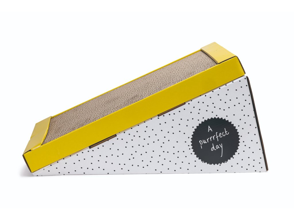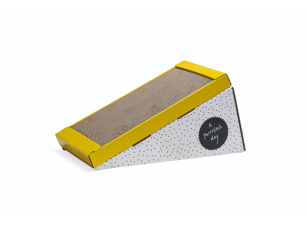Škrabacia rampa pre mačky z recyklovaného materiálu.