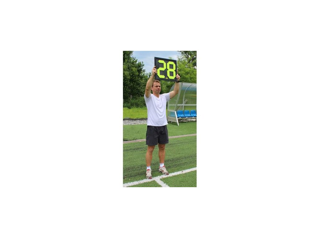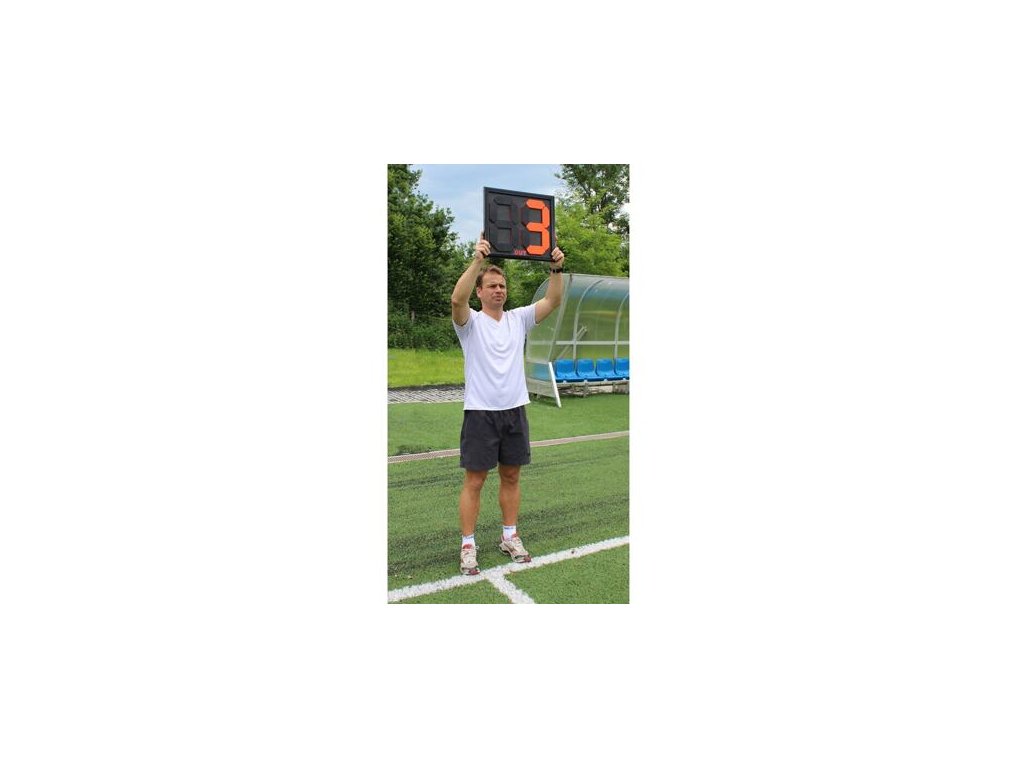 Mechanická tabuľa pre striedanie Merco Board je veľmi obľúbená medzi trénermi. Číslice sú natreté reflexnými farbami. Z jednej strany sú natreté na žlto, druhá strana na oranžovo, takže sú skvele vidieť aj z veľkej diaľky. Vďaka novému rotačnému systému, ktorý si značka Merco nechala patentovať, nastavíte mechanicky číslice za veľmi krátku dobu. 43,5 x 37,5 x 2 cmDodatočné parametre