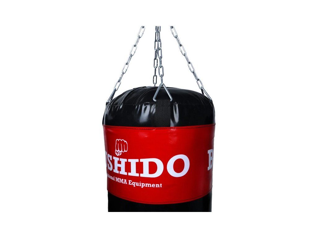 Profesionálne boxovacie vrece DBX BUSHIDO 180 x 45 cm. Dĺžka reťazí pri zavesení 45 cm (vďaka karabíne je možné nastaviť aj kratšiu dĺžku).