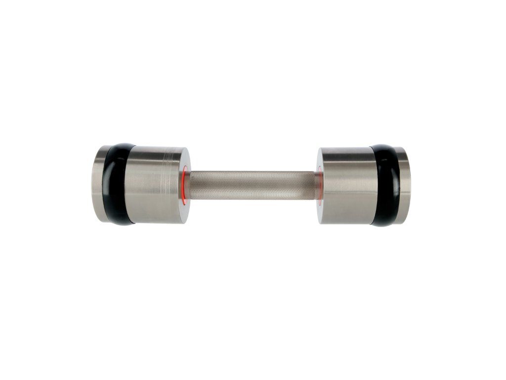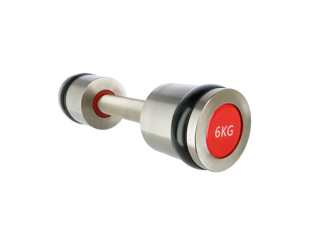 Ako materiál je použitá vysoko kvalitná chrómovaná oceľ, ktorá zaručuje dlhú životnosť, odolnosť voči poškodeniu a zamedzuje oxidácii. Činky sú opatrené mriežkovanou rukoväťou pre pevný a istý úchop. Na rozšírenej časti činiek je navlečený silikónový krúžok, ktorý chráni ako činku, tak podlahu pred poškodením. Činky je možné rozskrutkovať napríklad za úpravou celkovej hmotnosti.