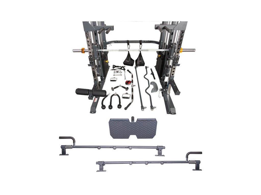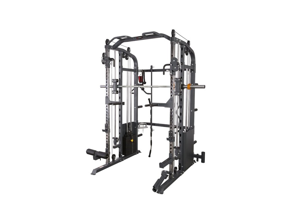 Multipress HMS CYKLOP 2 je najrozsiahlejšie zariadenie určené na komplexný tréning celého tela. Jeho univerzálnosť nahradí mnoho strojov bežnej posilňovne na jednom mieste.