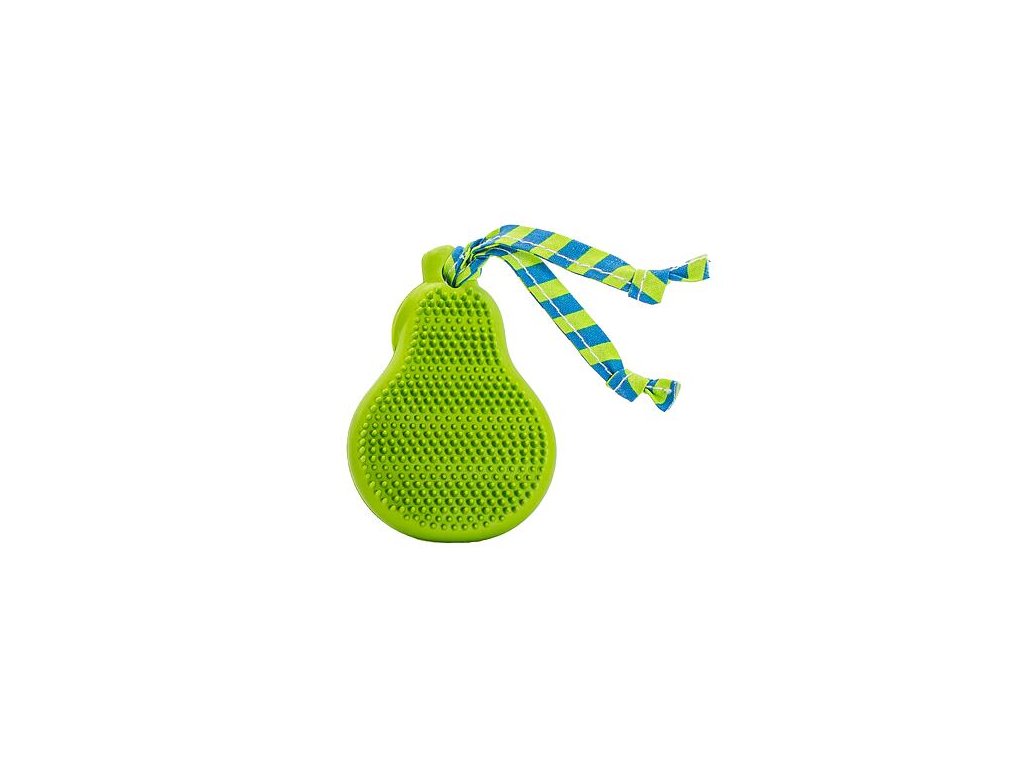 Dentálna hračka hruška prírodná guma pre šteňatá s látkovým strapcom 9 cm HipHop