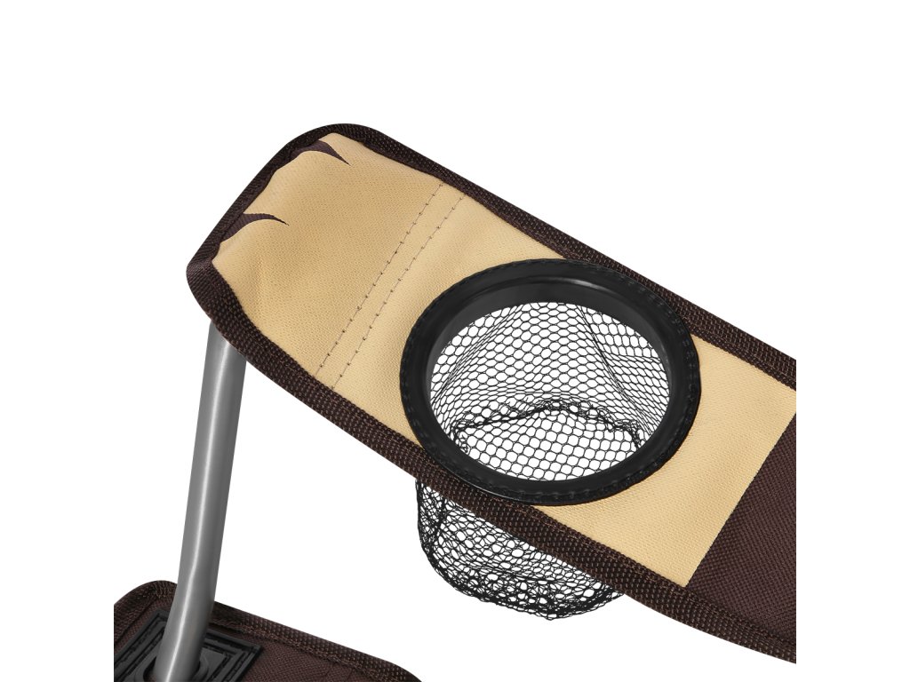 Lakťové opierky majú možnosť regulácie výšky jednoduchým posunom zadnej časti po profile konštrukcie. Pravá opierka lakťa je opatrená košíkom, do ktorého sa pohodlne zmestí menšia fľaša, alebo vysoký pohár. Pre ľahké prenášanie je možné stoličku zložiť. Súčasťou je ochranný obal s popruhom cez rameno.