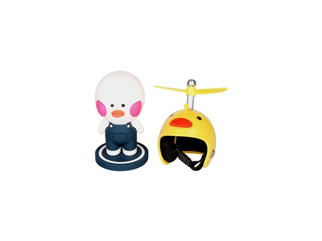 Štýlovo vyzerajúca dekoračná kačička Duck vykúzli úsmev každému dieťaťu. Postavička s výškou 9 cm ozdobí každú poličku, stôl alebo palubovku auta. Vďaka nalepovaciemu štítku na spodnej časti postavičky, môžete kačičku pevne pripevniť na spomínané miesta. Postavičke môžete zložiť alebo nasadiť helmu s vrtuľou. Helma je s motívom klasickej kačičky. Nazbierajte celú sadu kačičiek, ktoré nájdete v našej širokej ponuke. Nie je vhodné pre deti do 6 rokov. Parametre: rozmery: 9 x 4 cm hmotnosť: 56 g materiál: PVC, ABSDodatočné parametre