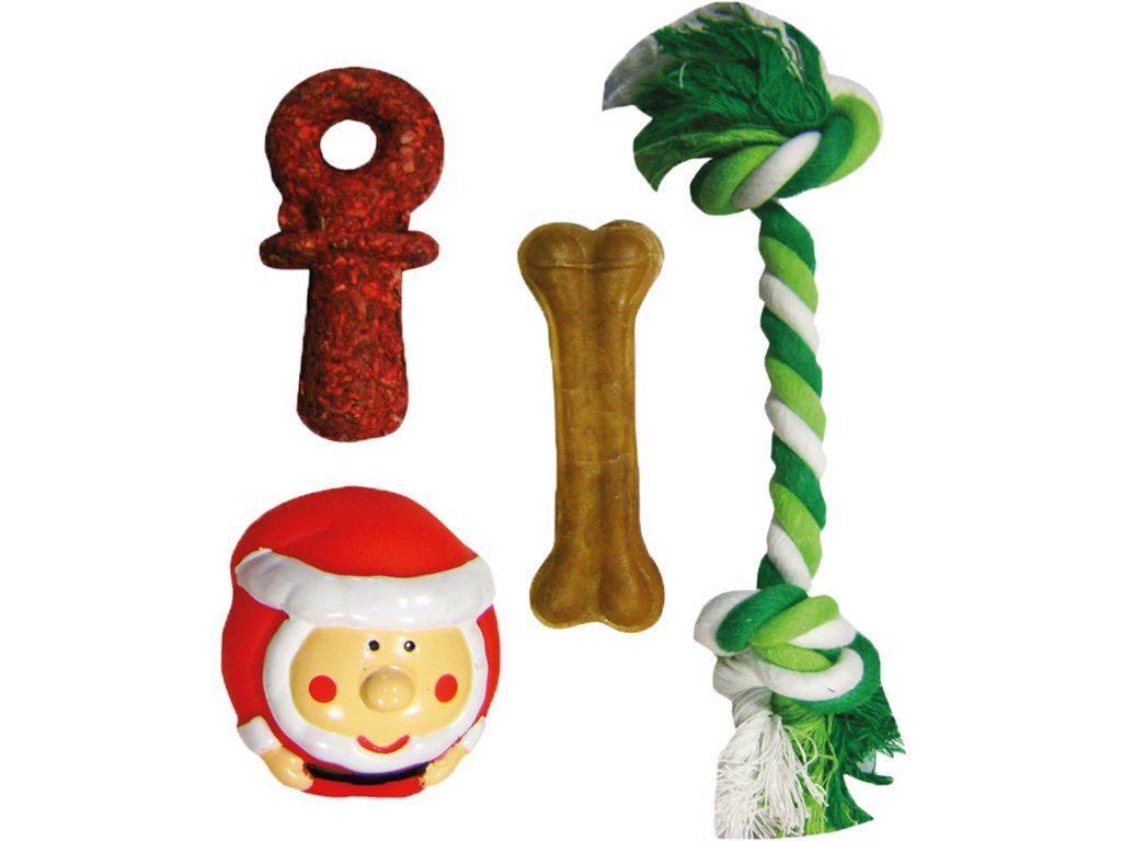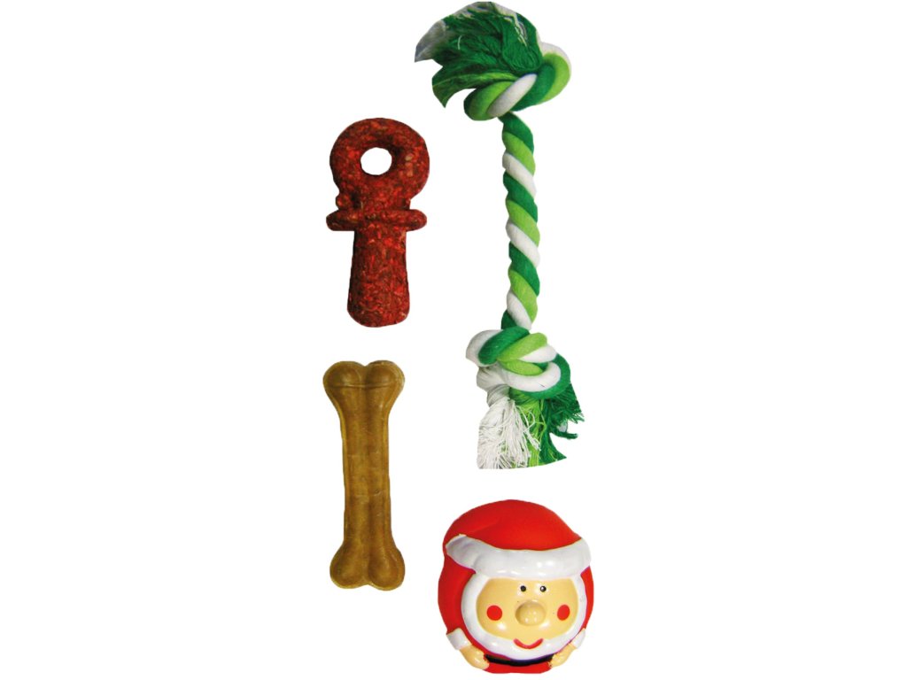 Rovnako tak, ako si ľudia vešia na krbové rímsy ponožky a dúfajú, že v nich nájdu nejaké darčeky, tak aj psy sú natešení, čo pre nich ich pánovia pripravia. Doprajte tento rok cez Vianoce svojmu vernému štvornohému priateľovi túto zábavnú sadu! Tento vianočný set obsahuje lano, loptičku a dve maškrty. Zatiaľ čo si Vy budete vychutnávať večeru, Váš psík sa môže baviť. Jednoducho perfektný darček...