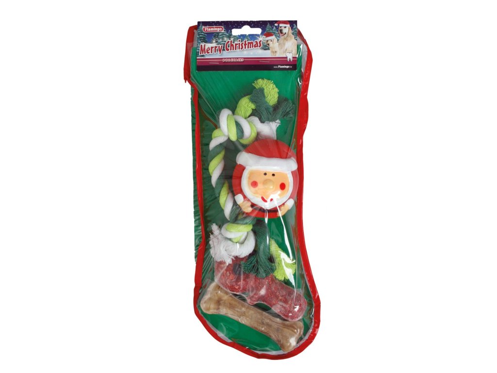 Flamingo Vianočná ponožka pre psov - set hračky s maškrtami