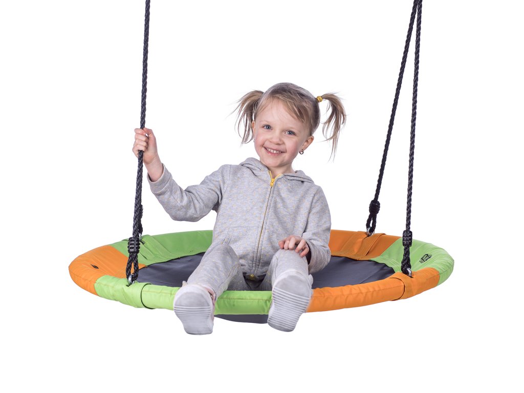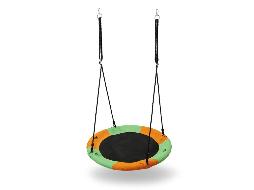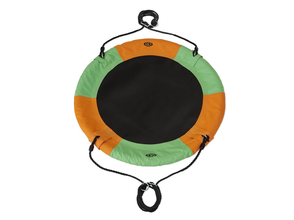 Kruhová hojdačka NILS Camp NB5003 je vhodná na použitie vonku. Hniezdo je vhodné ako na hojdanie, tak na odpočinok a vďaka priemeru 90 cm a nosnosti až 150 kg sa do neho pohodlne zmestia dve deti. Hojdačku drží 4 PE laná s dĺžkou 180 cm. Samotná konštrukcia hniezda je tvorená 25 mm širokým, oceľovým kruhom, ktorý je chránený vrstvou mirelonu a cez neho je natiahnutá polyesterová tkanina Oxford 600D.