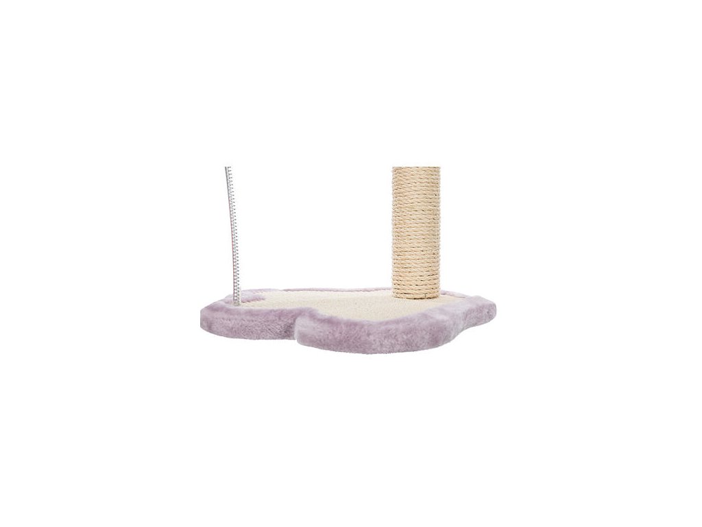 Štýlové škrabadlo pre mačky s odpočívadlom a hračkou.