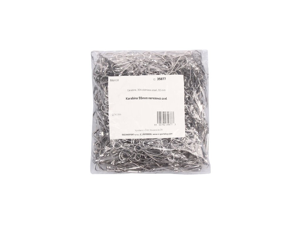Karabína vyrobená z nerezovej ocele (304 Stainless steel) o veľkosti 55 mm slúžiaca na upínanie tenisových pohľadových plachiet a zásten na ploty pozdĺž tenisových kurtov. Ideálny doplnok k našim tenisovým zástenám Merco Professional v rôznych veľkostiach.Dodatočné parametre