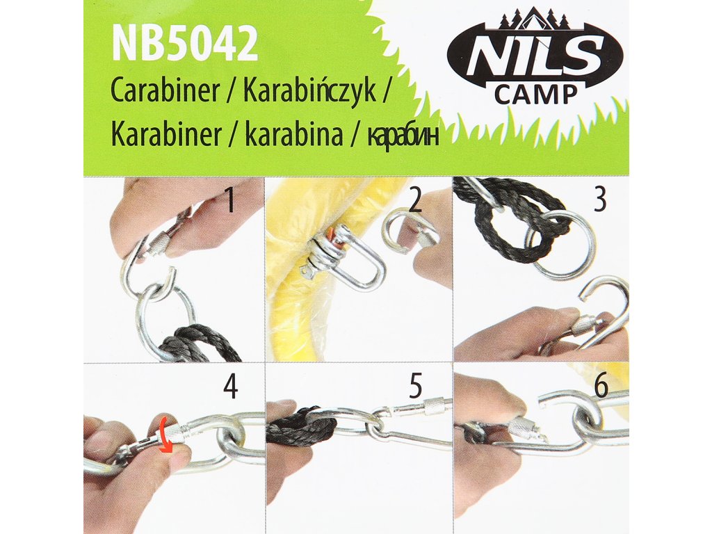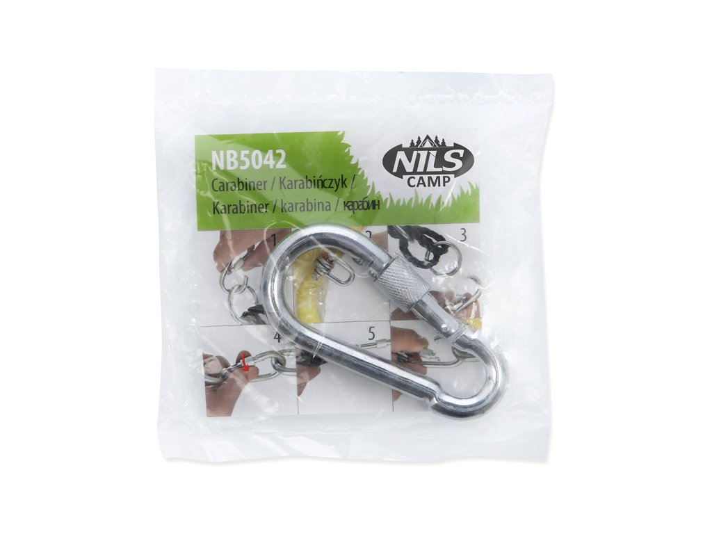 Oceľová karabína NILS Camp NB5042 so skrutkovacou poistkou váži iba 9 gramov, pri zamknutej poistke má ale nosnosť až 500 kilogramov.