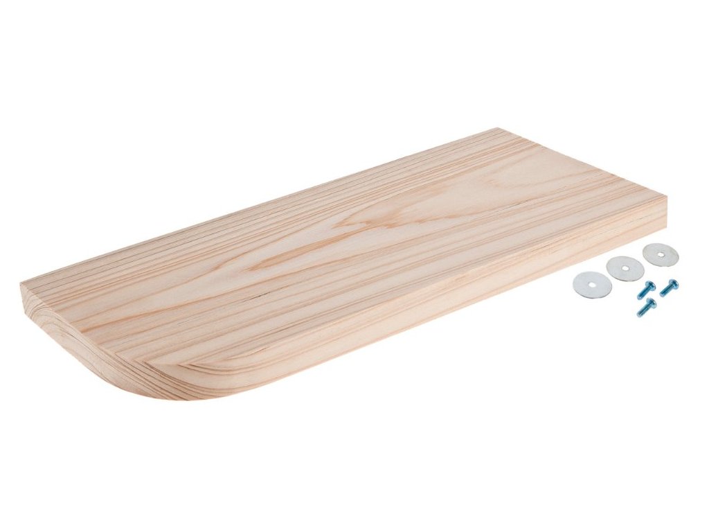 Drevené odpočívadlo pre hlodavce. Kovové úchyty (skrutky) na uchytenie na mrežu sú súčasťou odpočívadla.